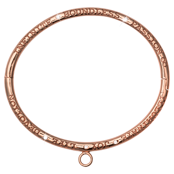 B1071RG19 Good vibes’ bangle (illuminate, joy, life, devotion, infinite, boundless, passion) with one loop where a charm can be attached, rose gold plated and 19cm – Limited 2018