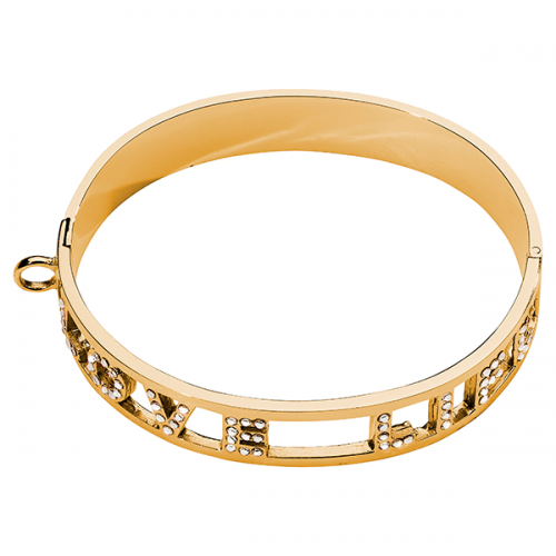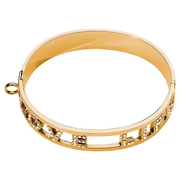 B1119G19 ‘Love Life’ bangle with Swarovski crystals of 1cm with one loop to attach a charm, gold plated in 19cm