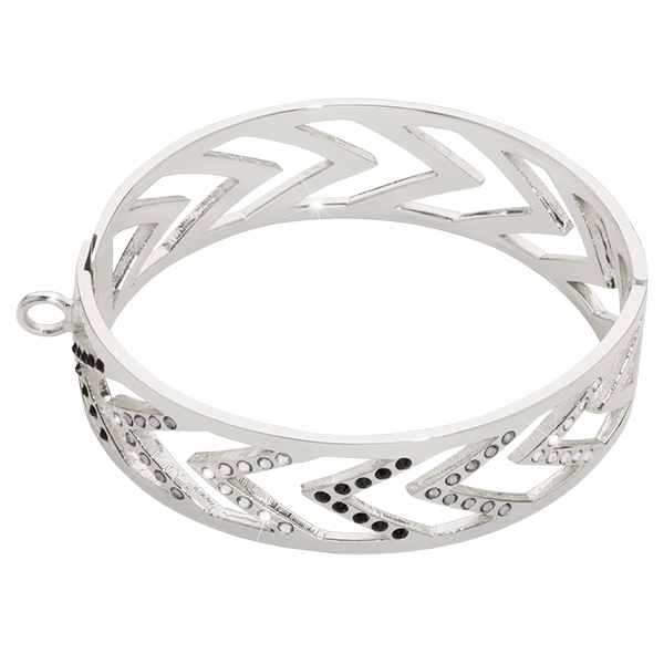 B1140S17 Large geometric chevron bangle of 2cm with one loop to attach a charm, silver plated and 17cm – Limited 2018