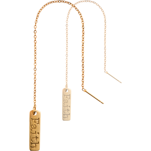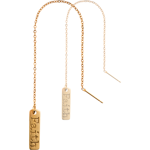 EA2008GM ‘Faith’ threader earrings with tag, gold plated and 20mm – Limited 2019